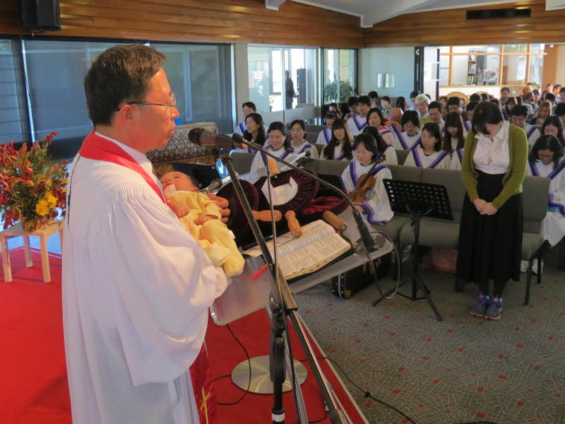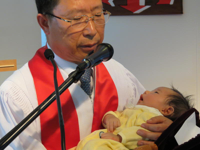 이무학 박지수 부부의 아들 온유가 첫 출석했습니다.