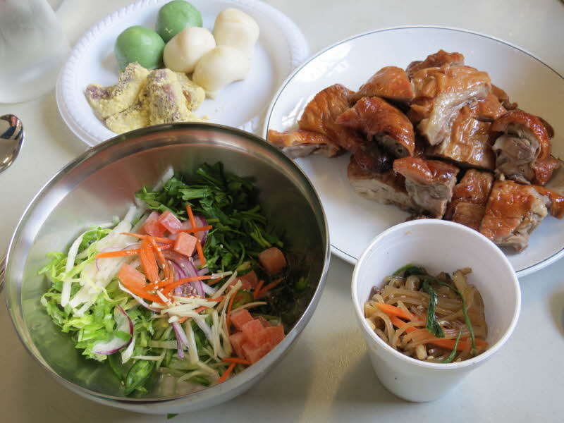 잡채 한 컵, 떡, 그리고 손님이 가져와 손님 상에 놓았던 칠면조 요리