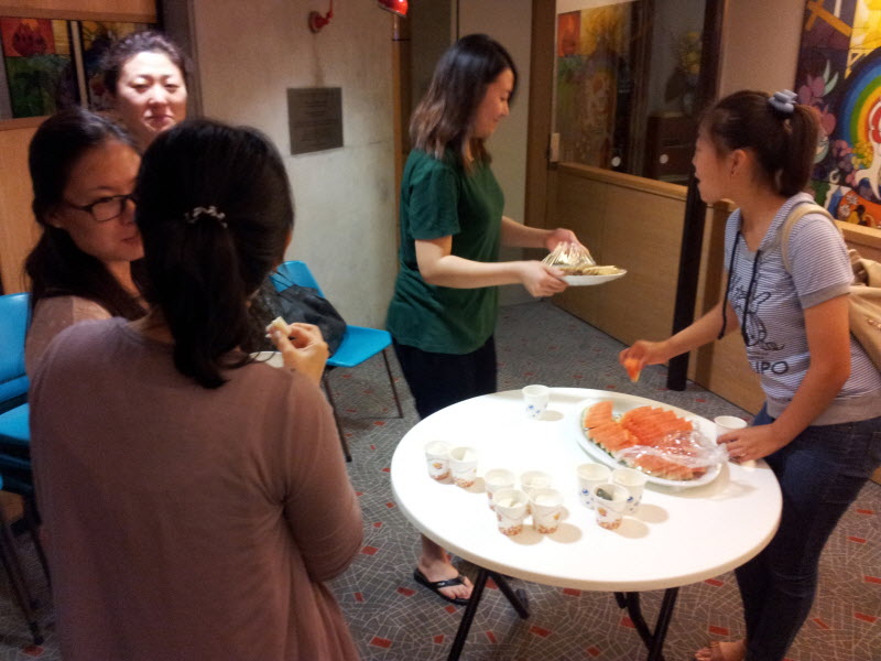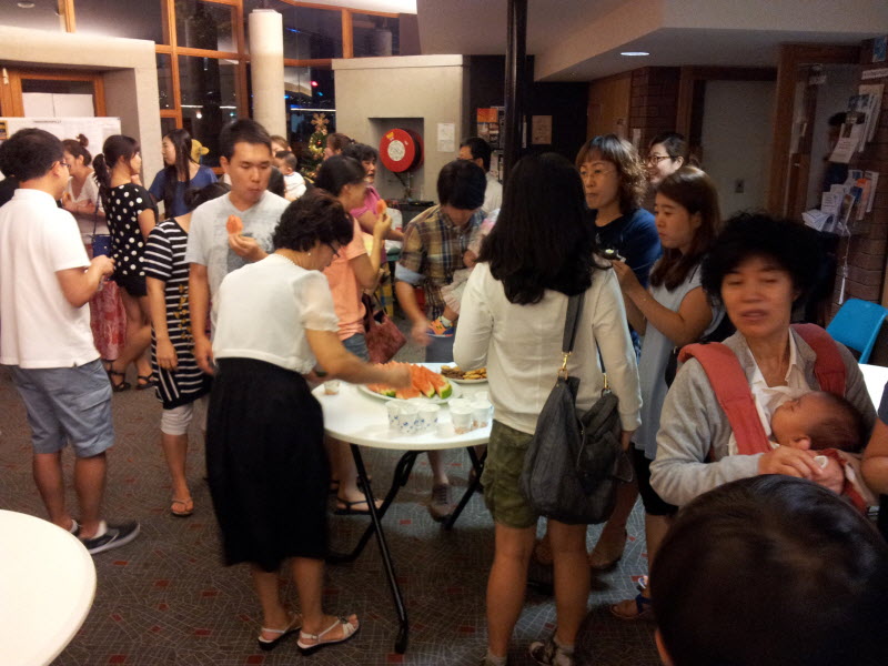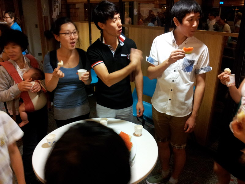 예배 후 함께 과자와 떡과 수박과 음료를 나눴습니다.